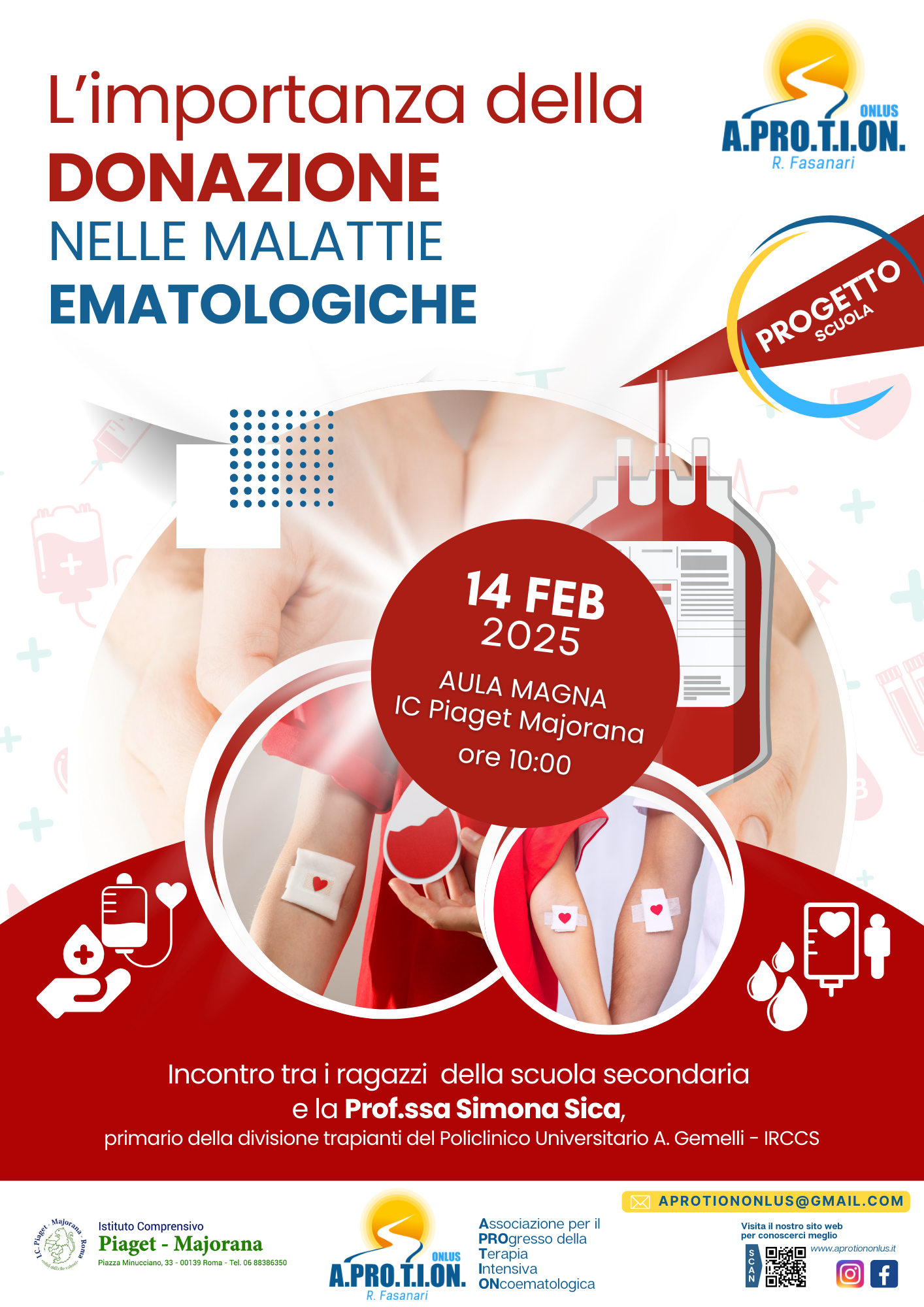 Tutti gli studenti hanno accolto con entusiasmo e partecipazione le parole del Presidente Maurizio Lucidi e della Prof.ssa Sica riguardo la fondamentale importanza della DONAZIONE e di come un piccolo gesto possa significare davvero tanto nel combattimento delle malattie Ematologiche.