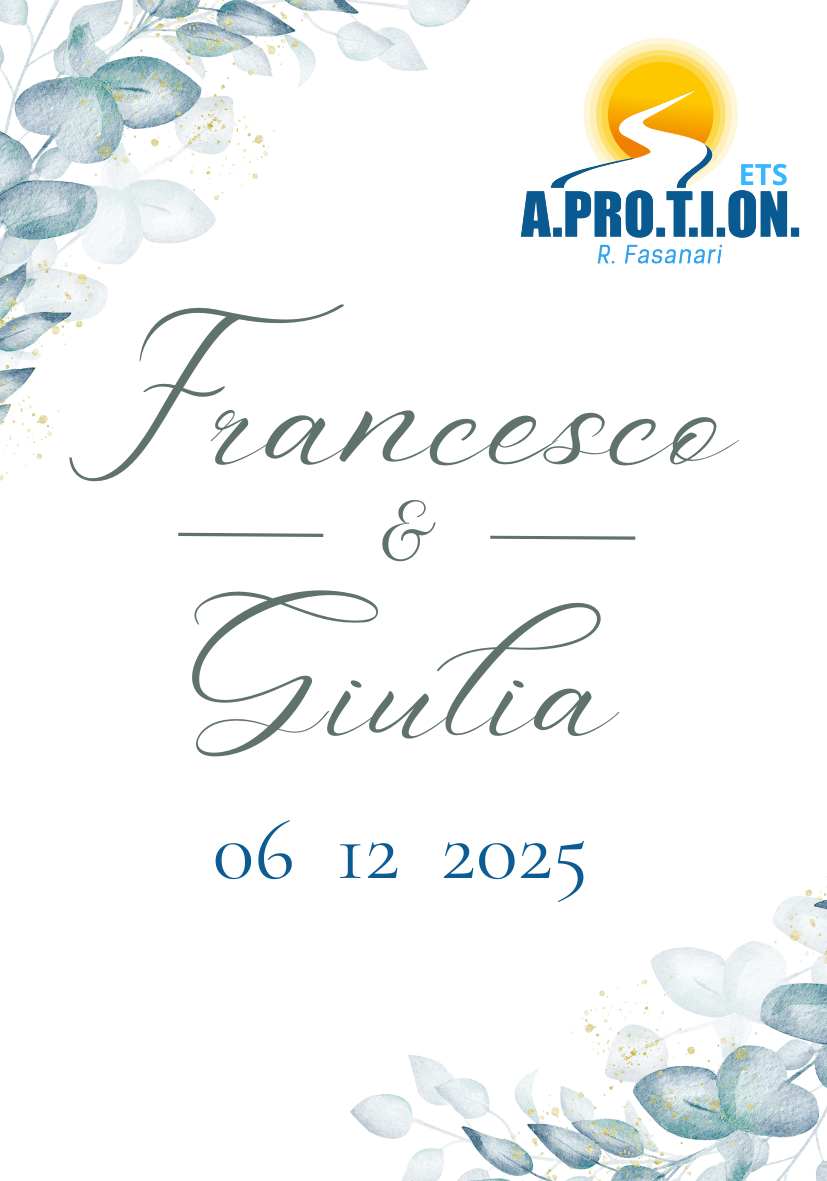 Francesco e Giulia hanno deciso di sostenere l’Associazione A.PRO.T.I.ON ETS con una donazione, trasformando il loro giorno più bello in un’occasione concreta per fare del bene.